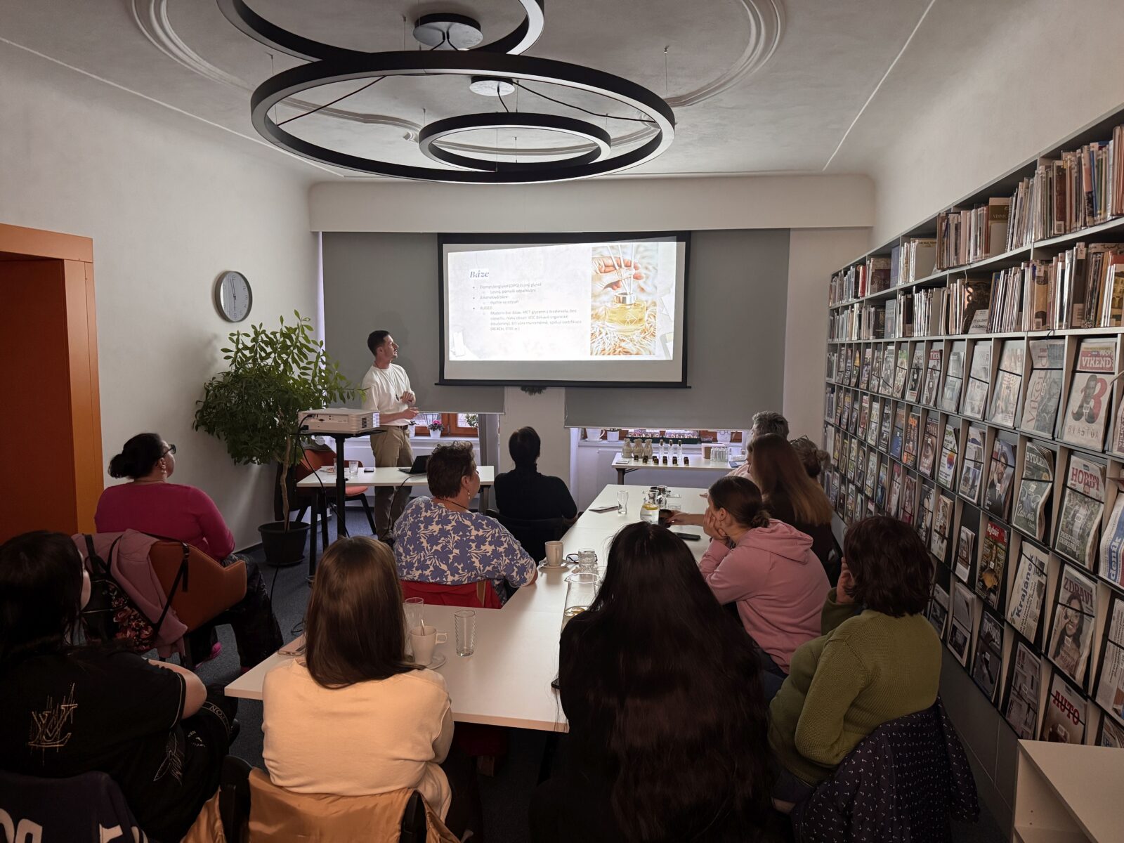 Velký zájem vzbudila rovněž přednáška Vůně v domácnosti, kterou vedl v úterý 24. 3. Michal Novák, zakladatel lipenské značky HORIZONT. Účastnice se dozvěděly, jak pracovat s vůněmi v domácím prostředí, jak vybírat kvalitní a bezpečné produkty a jak vytvořit harmonickou atmosféru domova. Součástí programu byl i workshop výroby vlastního bytového parfému.